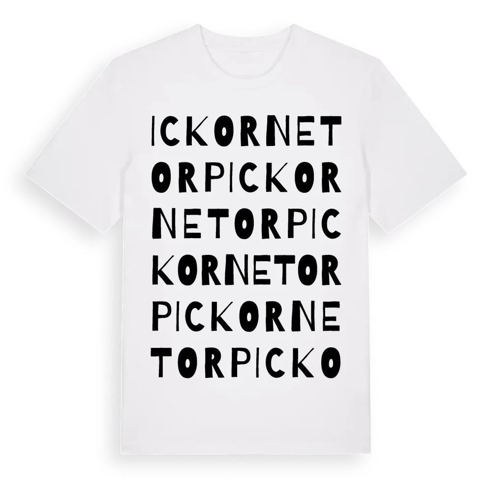 Ickornetorp ordlek t-shirt är inspirerad av Ickornetorp i Kalmar län, Sverige. Tröjan är designad för dig som har en speciell koppling till platsen – oavsett om du bor här, har rötterna här eller bara älskar Ickornetorp.