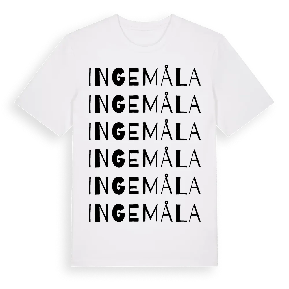Ingemåla ordlek t-shirt är inspirerad av byn Ingemåla i Kalmar län, Sverige. Tröjan är designad för dig som har en speciell koppling till platsen – oavsett om du bor här, har rötterna här eller bara älskar Ingemåla.