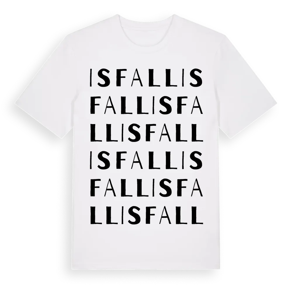 En ordlek byggd på Isfalls namn. Subtilt och klurig – ett motiv som bara de som verkligen känner platsen fullt ut förstår. Premium bomull, unisex – från byn Isfall i Kalmar län.