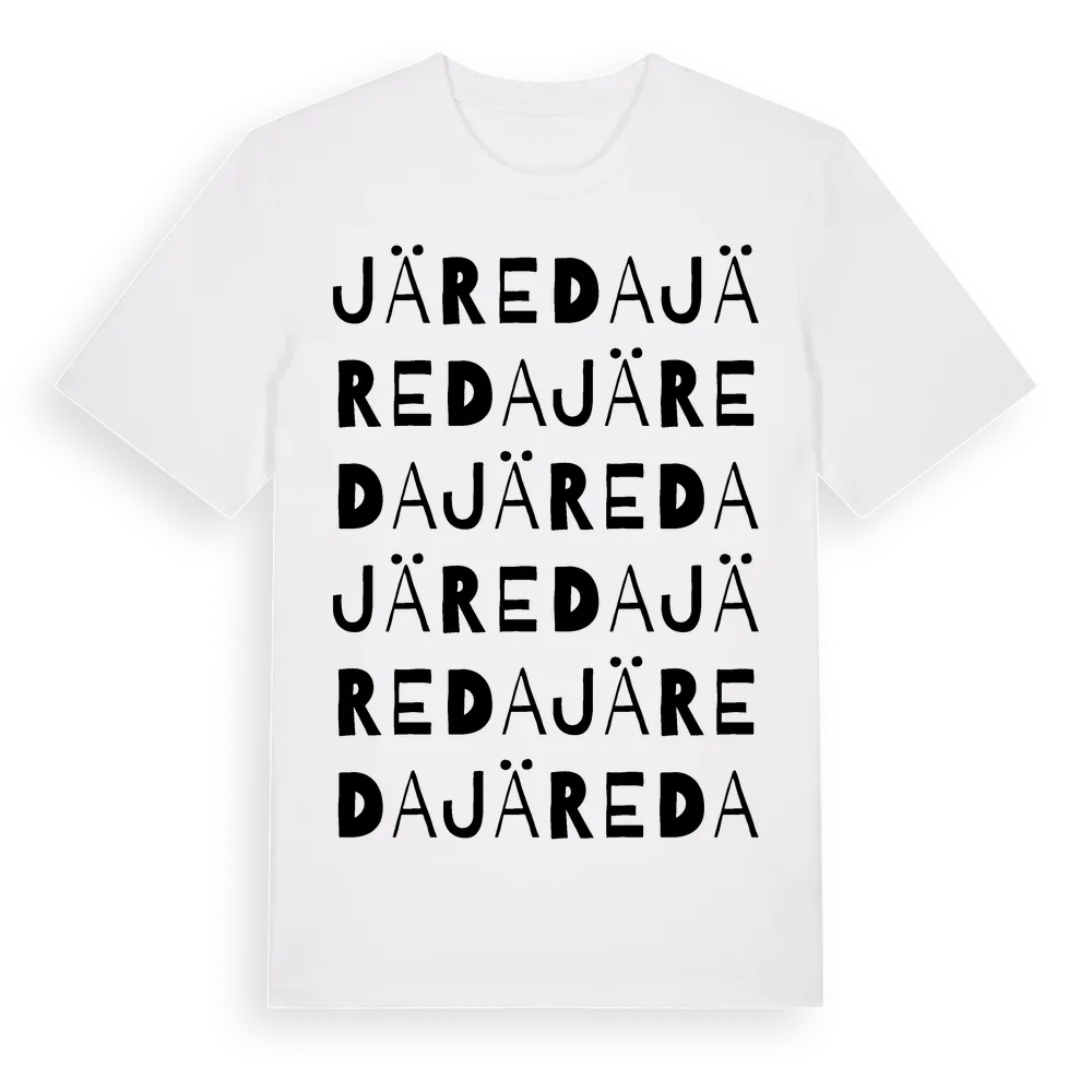 Järeda ordlek t-shirt är inspirerad av Järeda i Kalmar län, Sverige. Tröjan är designad för dig som har en speciell koppling till platsen – oavsett om du bor här, har rötterna här eller bara älskar Järeda.