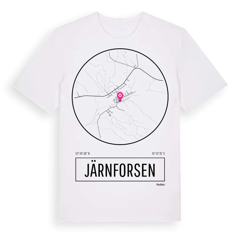 Järnforsen t-shirt är inspirerad av byn Järnforsen i Kalmar län, Sverige. Tröjan är designad för dig som har en speciell koppling till platsen – oavsett om du bor här, har rötterna här eller bara älskar Järnforsen.