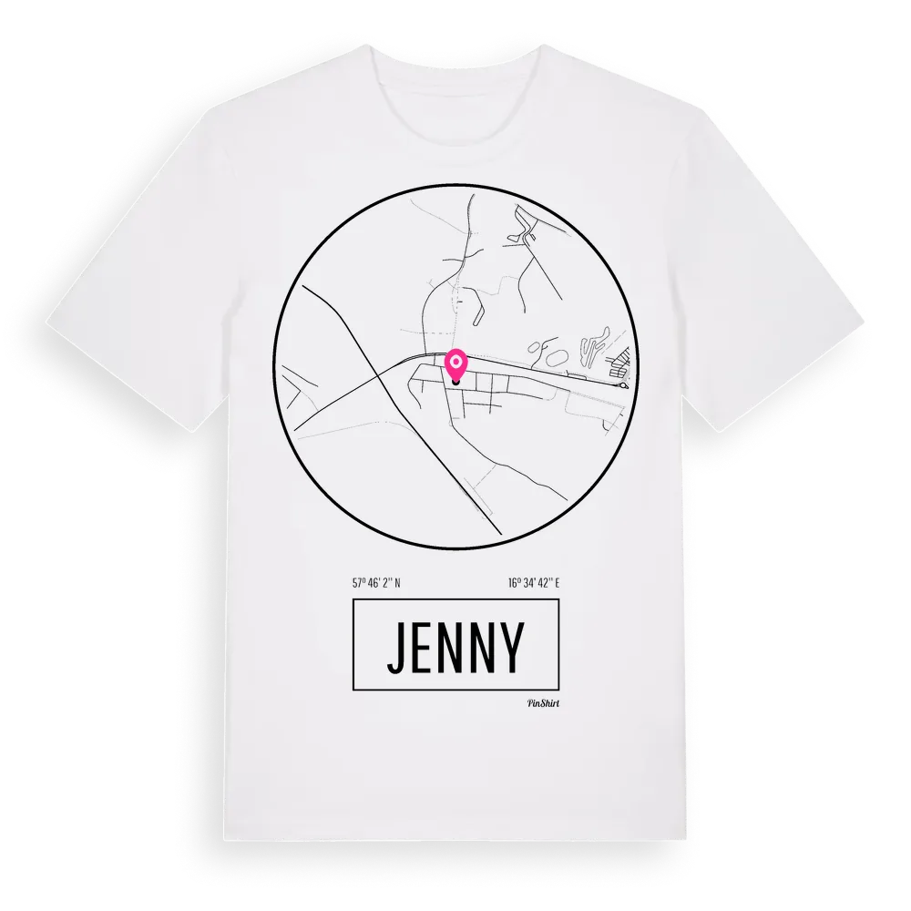 Jenny t-shirt är inspirerad av stadsdelen Jenny i Kalmar län, Sverige. Tröjan är designad för dig som har en speciell koppling till platsen – oavsett om du bor här, har rötterna här eller bara älskar Jenny.