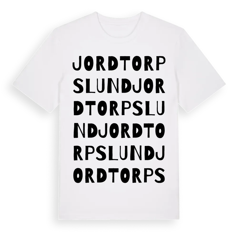 Jordtorpslund ordlek t-shirt är inspirerad av Jordtorpslund i Kalmar län, Sverige. Tröjan är designad för dig som har en speciell koppling till platsen – oavsett om du bor här, har rötterna här eller bara älskar Jordtorpslund.