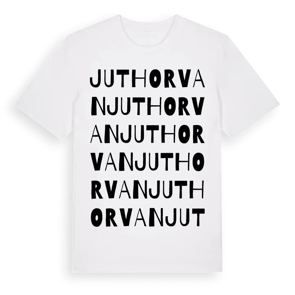 Juthorvan ordlek t-shirt är inspirerad av Juthorvan i Kalmar län, Sverige. Tröjan är designad för dig som har en speciell koppling till platsen – oavsett om du bor här, har rötterna här eller bara älskar Juthorvan.