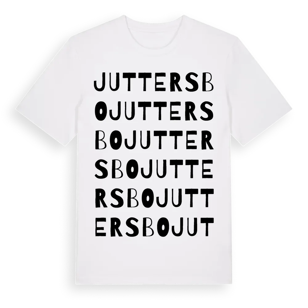 Juttersbo ordlek t-shirt är inspirerad av byn Juttersbo i Kalmar län, Sverige. Tröjan är designad för dig som har en speciell koppling till platsen – oavsett om du bor här, har rötterna här eller bara älskar Juttersbo.