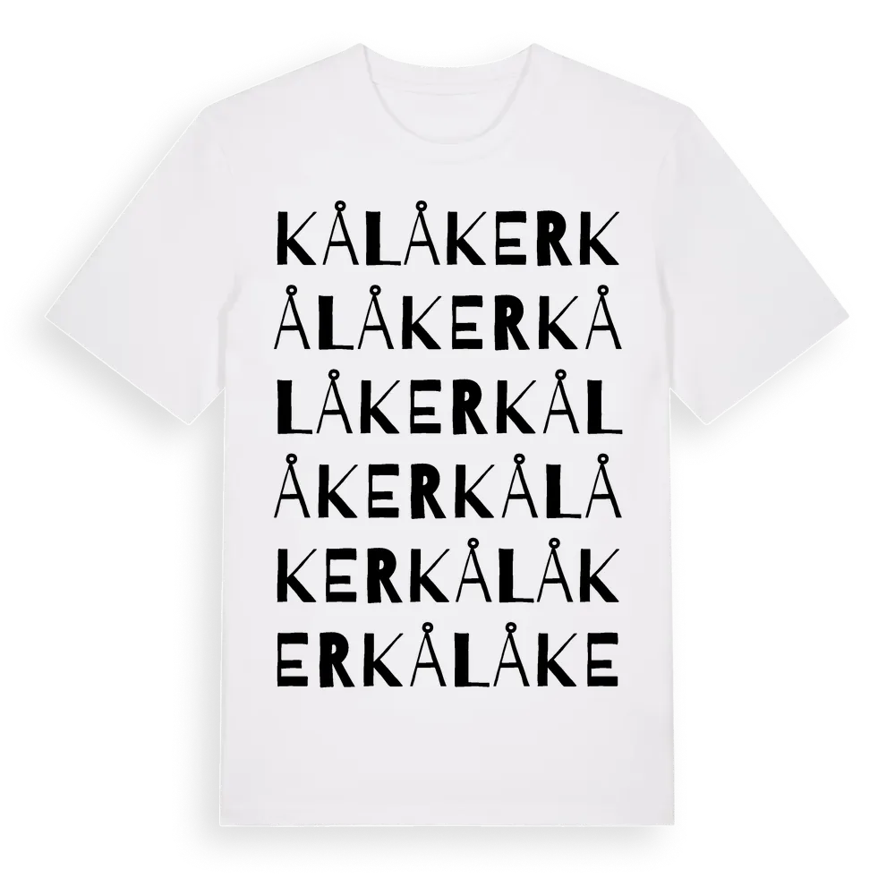 Kålåker ordlek t-shirt är inspirerad av byn Kålåker i Kalmar län, Sverige. Tröjan är designad för dig som har en speciell koppling till platsen – oavsett om du bor här, har rötterna här eller bara älskar Kålåker.