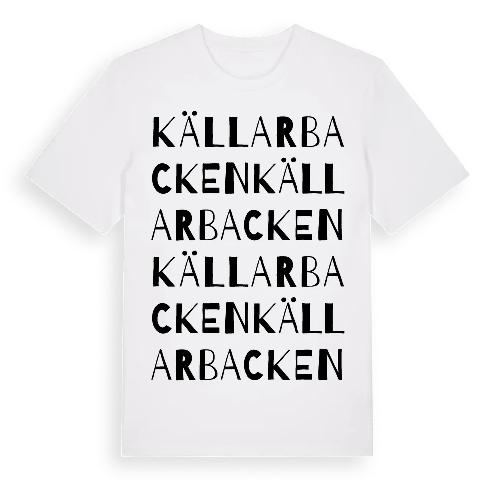 Källarbacken ordlek t-shirt är inspirerad av Källarbacken i Kalmar län, Sverige. Tröjan är designad för dig som har en speciell koppling till platsen – oavsett om du bor här, har rötterna här eller bara älskar Källarbacken.