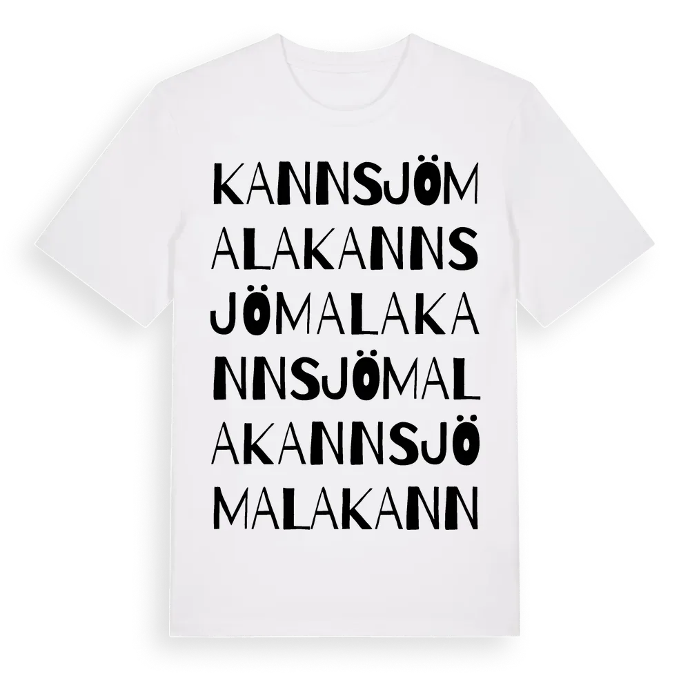 Kannsjömala ordlek t-shirt är inspirerad av Kannsjömala i Kalmar län, Sverige. Tröjan är designad för dig som har en speciell koppling till platsen – oavsett om du bor här, har rötterna här eller bara älskar Kannsjömala.