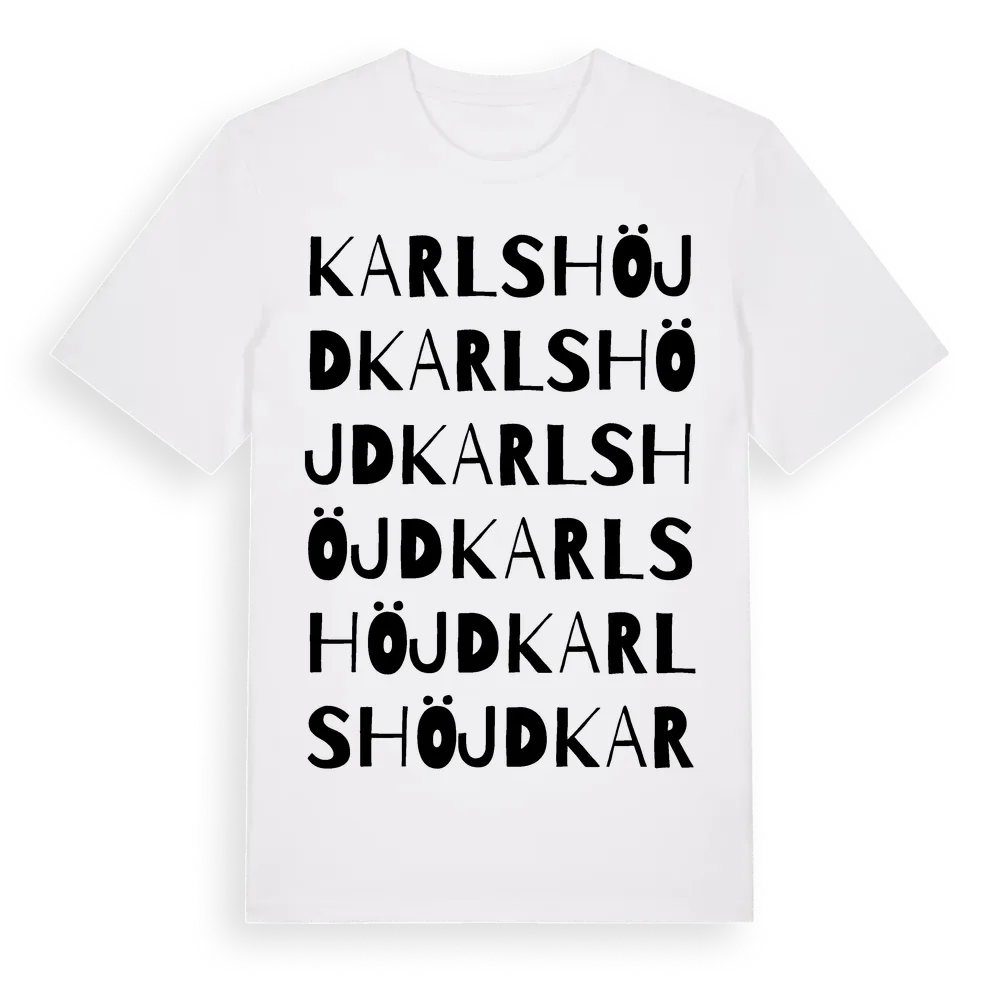 Karlshöjd ordlek t-shirt är inspirerad av stadsdelen Karlshöjd i Kalmar län, Sverige. Tröjan är designad för dig som har en speciell koppling till platsen – oavsett om du bor här, har rötterna här eller bara älskar Karlshöjd.