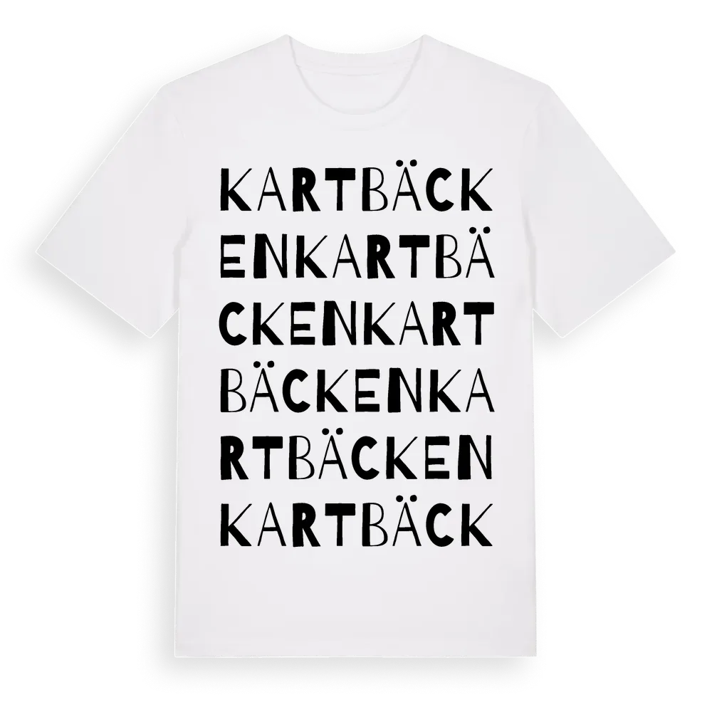 Kartbäcken ordlek t-shirt är inspirerad av Kartbäcken i Kalmar län, Sverige. Tröjan är designad för dig som har en speciell koppling till platsen – oavsett om du bor här, har rötterna här eller bara älskar Kartbäcken.