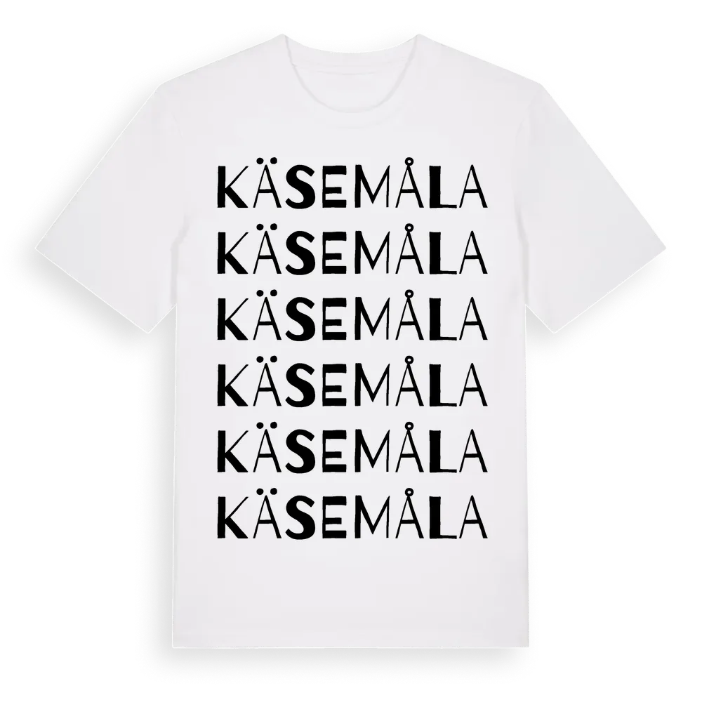 Käsemåla ordlek t-shirt är inspirerad av byn Käsemåla i Kalmar län, Sverige. Tröjan är designad för dig som har en speciell koppling till platsen – oavsett om du bor här, har rötterna här eller bara älskar Käsemåla.