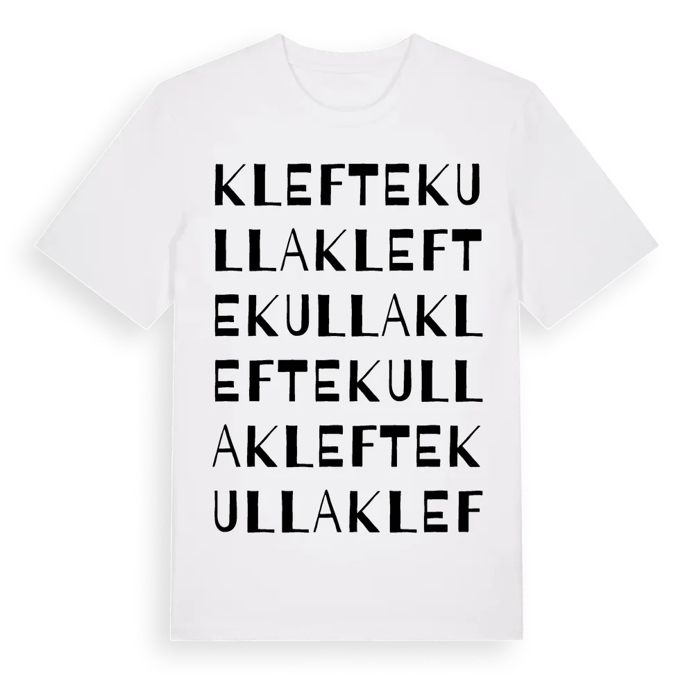 Kleftekulla ordlek t-shirt är inspirerad av Kleftekulla i Kalmar län, Sverige. Tröjan är designad för dig som har en speciell koppling till platsen – oavsett om du bor här, har rötterna här eller bara älskar Kleftekulla.
