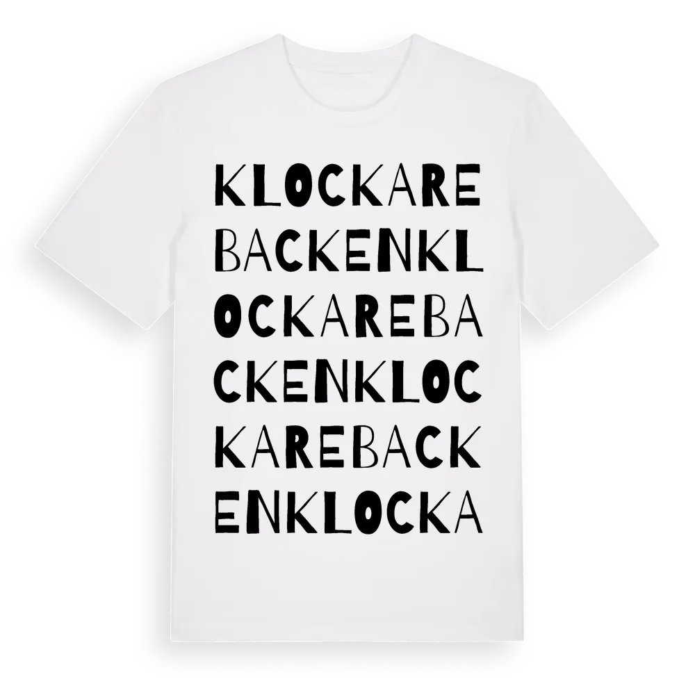 Klockarebacken ordlek t-shirt är inspirerad av stadsdelen Klockarebacken i Kalmar län, Sverige. Tröjan är designad för dig som har en speciell koppling till platsen – oavsett om du bor här, har rötterna här eller bara älskar Klockarebacken.
