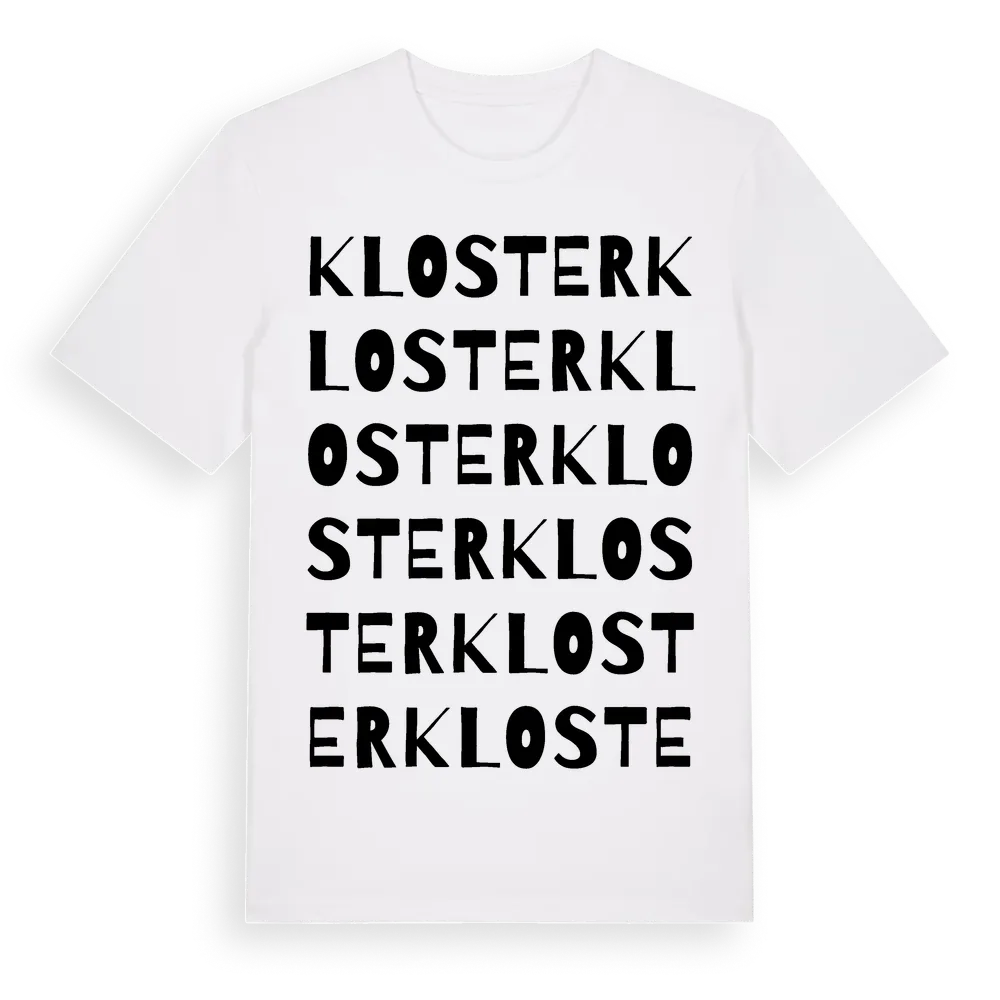Kloster ordlek t-shirt är inspirerad av byn Kloster i Kalmar län, Sverige. Tröjan är designad för dig som har en speciell koppling till platsen – oavsett om du bor här, har rötterna här eller bara älskar Kloster.