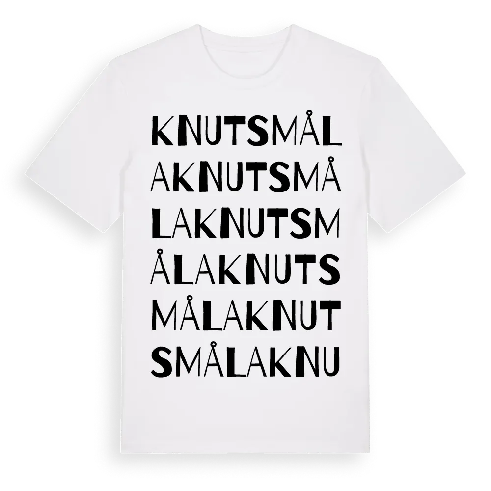 Knutsmåla ordlek t-shirt är inspirerad av Knutsmåla i Kalmar län, Sverige. Tröjan är designad för dig som har en speciell koppling till platsen – oavsett om du bor här, har rötterna här eller bara älskar Knutsmåla.