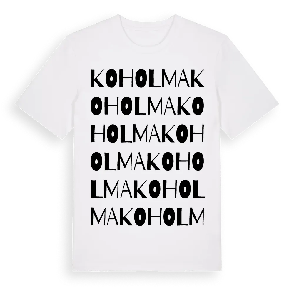 Koholma ordlek t-shirt är inspirerad av byn Koholma i Kalmar län, Sverige. Tröjan är designad för dig som har en speciell koppling till platsen – oavsett om du bor här, har rötterna här eller bara älskar Koholma.