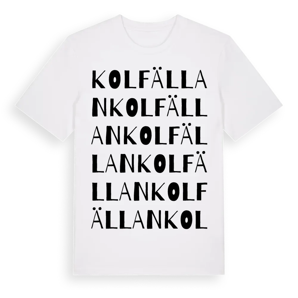 Kolfällan ordlek t-shirt är inspirerad av Kolfällan i Kalmar län, Sverige. Tröjan är designad för dig som har en speciell koppling till platsen – oavsett om du bor här, har rötterna här eller bara älskar Kolfällan.