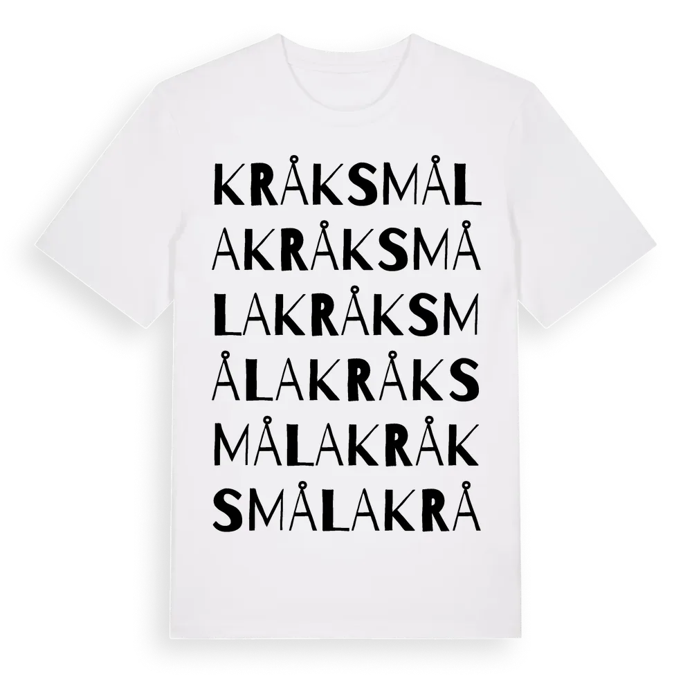 Kråksmåla ordlek t-shirt är inspirerad av byn Kråksmåla i Kalmar län, Sverige. Tröjan är designad för dig som har en speciell koppling till platsen – oavsett om du bor här, har rötterna här eller bara älskar Kråksmåla.