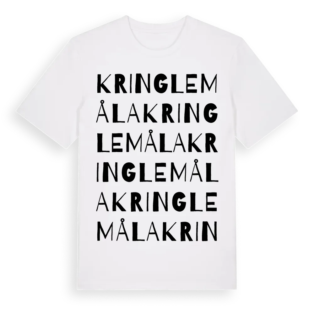 Kringlemåla ordlek t-shirt är inspirerad av Kringlemåla i Kalmar län, Sverige. Tröjan är designad för dig som har en speciell koppling till platsen – oavsett om du bor här, har rötterna här eller bara älskar Kringlemåla.