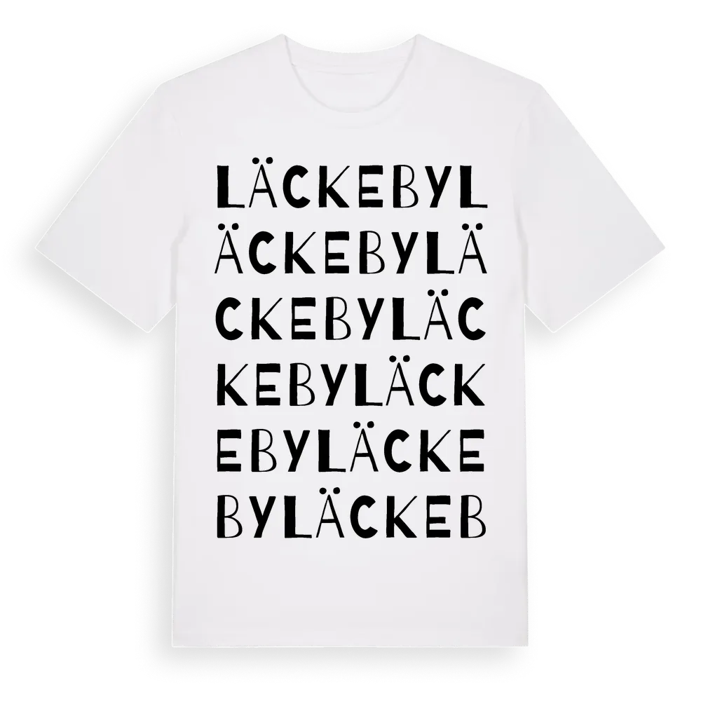Läckeby ordlek t-shirt är inspirerad av Läckeby i Kalmar län, Sverige. Tröjan är designad för dig som har en speciell koppling till platsen – oavsett om du bor här, har rötterna här eller bara älskar Läckeby.