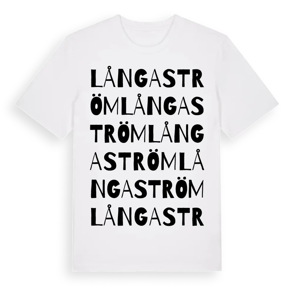 Långaström ordlek t-shirt är inspirerad av byn Långaström i Kalmar län, Sverige. Tröjan är designad för dig som har en speciell koppling till platsen – oavsett om du bor här, har rötterna här eller bara älskar Långaström.
