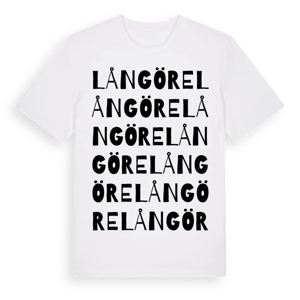 Långöre ordlek t-shirt är inspirerad av byn Långöre i Kalmar län, Sverige. Tröjan är designad för dig som har en speciell koppling till platsen – oavsett om du bor här, har rötterna här eller bara älskar Långöre.