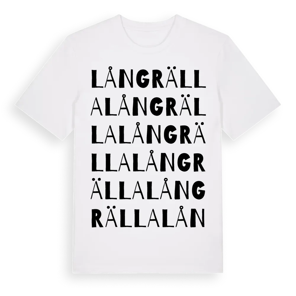 Långrälla ordlek t-shirt är inspirerad av byn Långrälla i Kalmar län, Sverige. Tröjan är designad för dig som har en speciell koppling till platsen – oavsett om du bor här, har rötterna här eller bara älskar Långrälla.