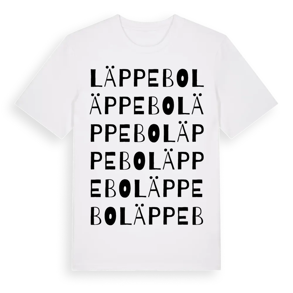 Läppebo ordlek t-shirt är inspirerad av Läppebo i Kalmar län, Sverige. Tröjan är designad för dig som har en speciell koppling till platsen – oavsett om du bor här, har rötterna här eller bara älskar Läppebo.