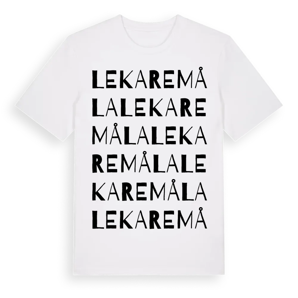 Lekaremåla ordlek t-shirt är inspirerad av Lekaremåla i Kalmar län, Sverige. Tröjan är designad för dig som har en speciell koppling till platsen – oavsett om du bor här, har rötterna här eller bara älskar Lekaremåla.