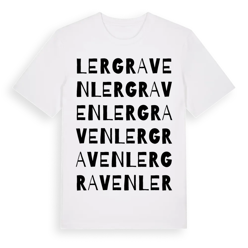 Lergraven ordlek t-shirt är inspirerad av Lergraven i Kalmar län, Sverige. Tröjan är designad för dig som har en speciell koppling till platsen – oavsett om du bor här, har rötterna här eller bara älskar Lergraven.