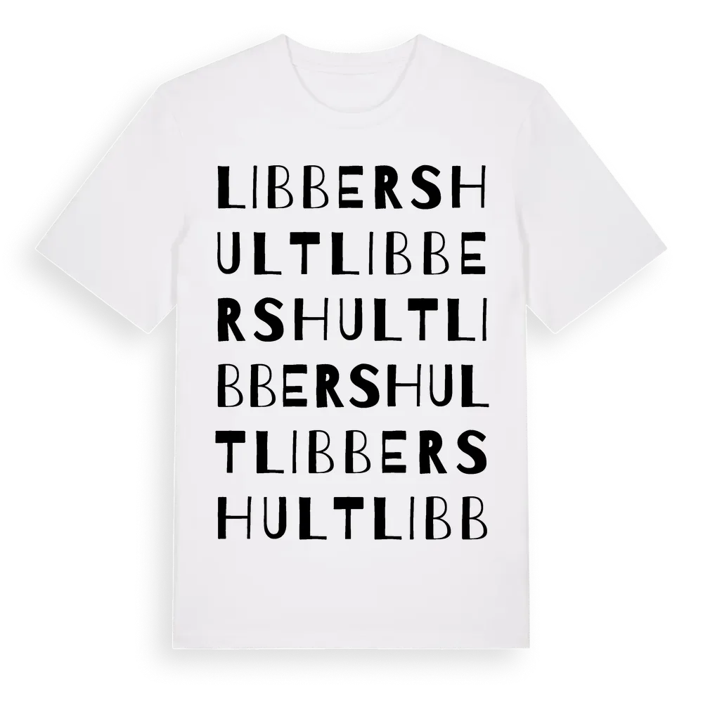 En ordlek byggd på Libbershults namn. Subtilt och klurig – ett motiv som bara de som verkligen känner platsen fullt ut förstår. Premium bomull, unisex – från byn Libbershult i Kalmar län.