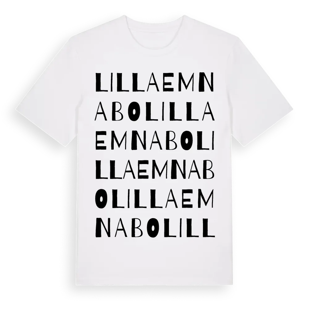 Lilla Emnabo ordlek t-shirt är inspirerad av Lilla Emnabo i Kalmar län, Sverige. Tröjan är designad för dig som har en speciell koppling till platsen – oavsett om du bor här, har rötterna här eller bara älskar Lilla Emnabo.