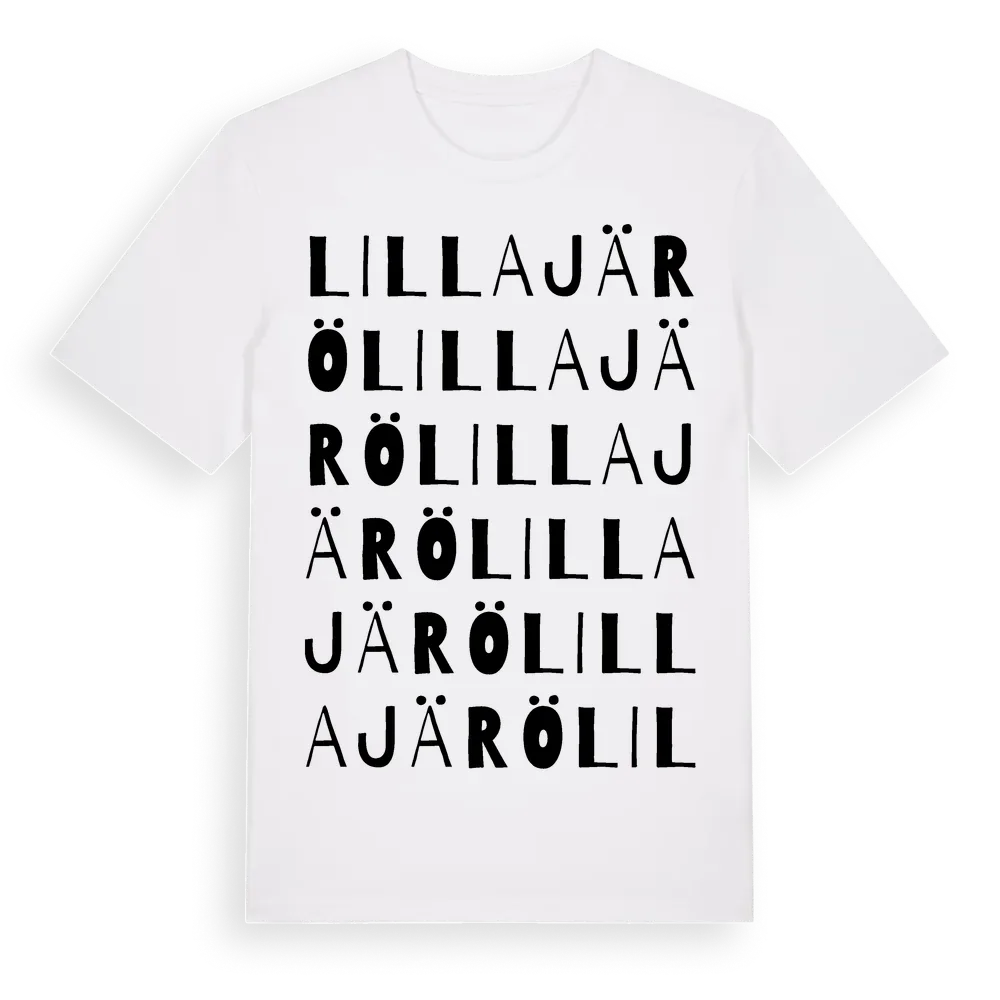 En ordlek byggd på Lilla Järös namn. Subtilt och klurig – ett motiv som bara de som verkligen känner platsen fullt ut förstår. Premium bomull, unisex – från ön Lilla Järö i Kalmar län.