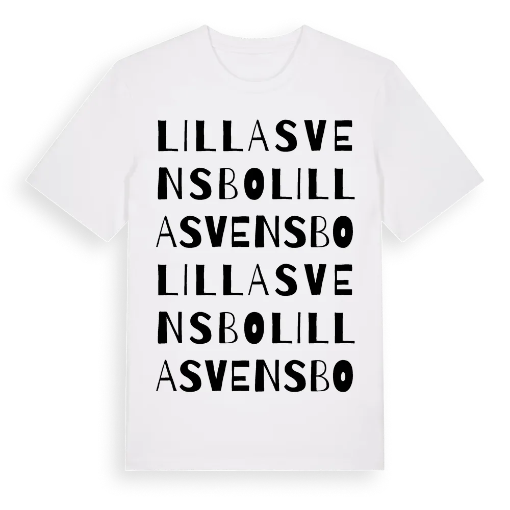 Lilla Svensbo ordlek t-shirt är inspirerad av Lilla Svensbo i Kalmar län, Sverige. Tröjan är designad för dig som har en speciell koppling till platsen – oavsett om du bor här, har rötterna här eller bara älskar Lilla Svensbo.