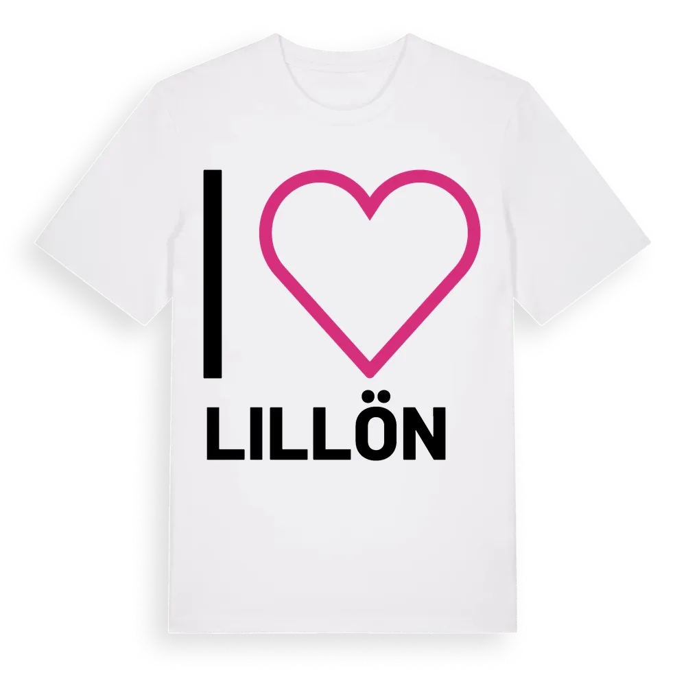 Det klassiska "I ❤ Lillön"-motivet i stort format som täcker hela bröstet. För dig som vill visa kärleken till Lillön på riktigt. Premium bomull, unisex – från byn Lillön i Kalmar län.