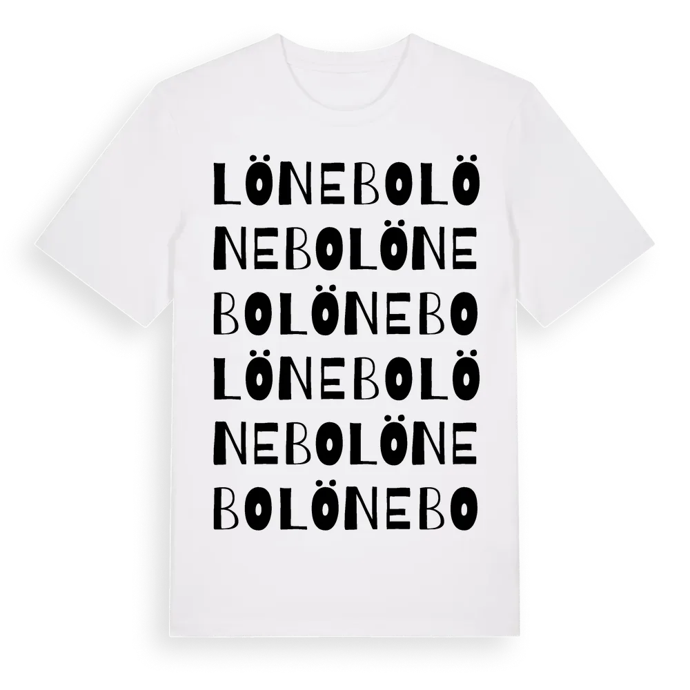 Lönebo ordlek t-shirt är inspirerad av Lönebo i Kalmar län, Sverige. Tröjan är designad för dig som har en speciell koppling till platsen – oavsett om du bor här, har rötterna här eller bara älskar Lönebo.