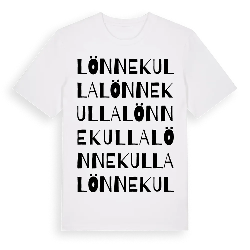 Lönnekulla ordlek t-shirt är inspirerad av Lönnekulla i Kalmar län, Sverige. Tröjan är designad för dig som har en speciell koppling till platsen – oavsett om du bor här, har rötterna här eller bara älskar Lönnekulla.