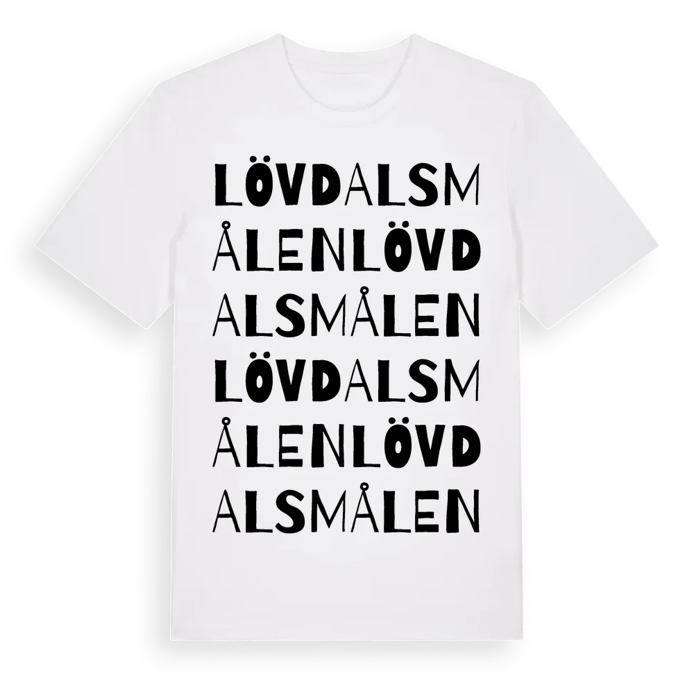 Lövdalsmålen ordlek t-shirt är inspirerad av Lövdalsmålen i Kalmar län, Sverige. Tröjan är designad för dig som har en speciell koppling till platsen – oavsett om du bor här, har rötterna här eller bara älskar Lövdalsmålen.