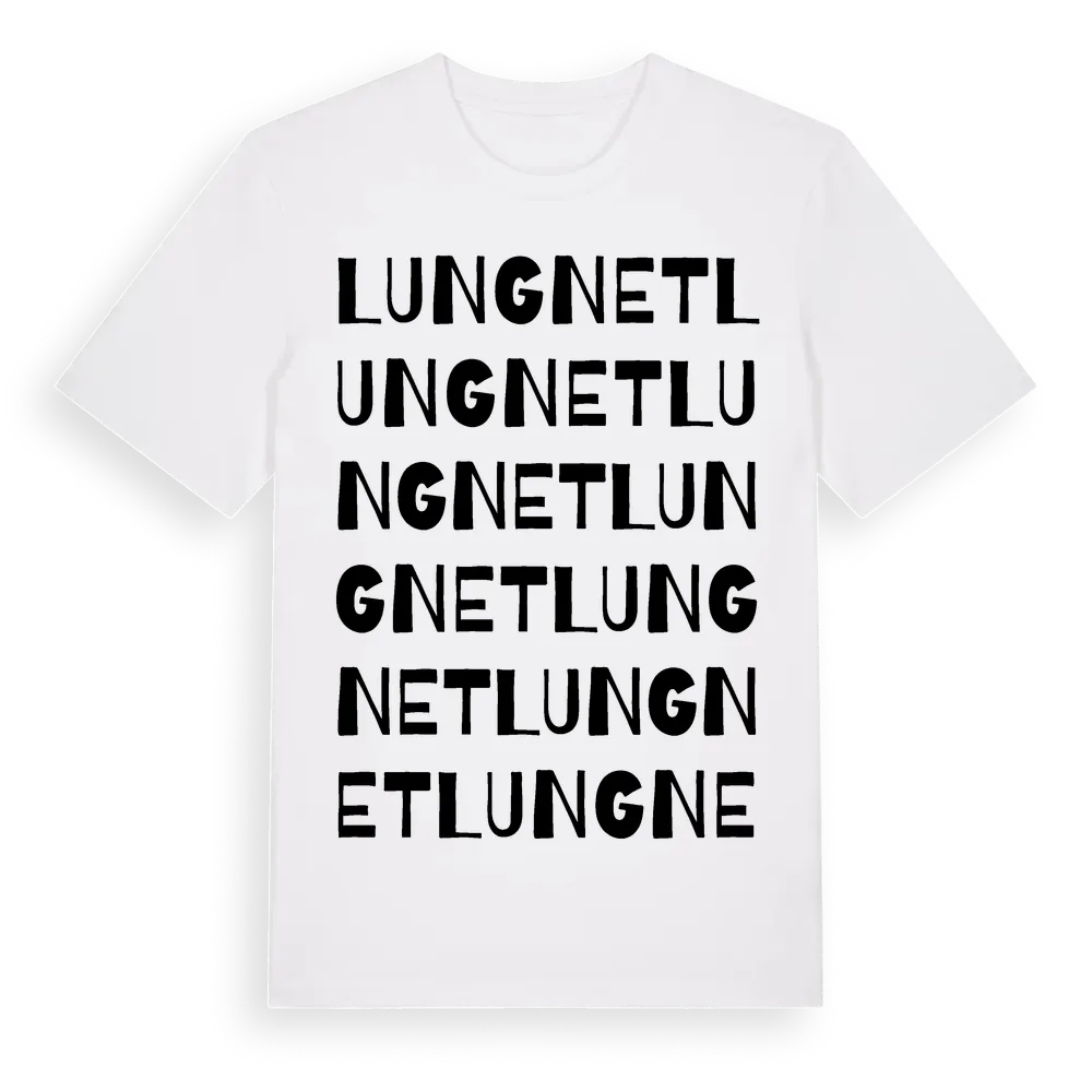 Lungnet ordlek t-shirt är inspirerad av Lungnet i Kalmar län, Sverige. Tröjan är designad för dig som har en speciell koppling till platsen – oavsett om du bor här, har rötterna här eller bara älskar Lungnet.