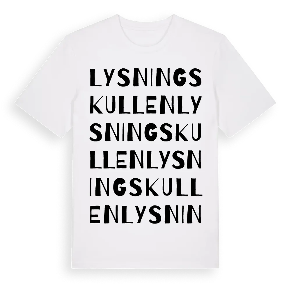 Lysningskullen ordlek t-shirt är inspirerad av Lysningskullen i Kalmar län, Sverige. Tröjan är designad för dig som har en speciell koppling till platsen – oavsett om du bor här, har rötterna här eller bara älskar Lysningskullen.