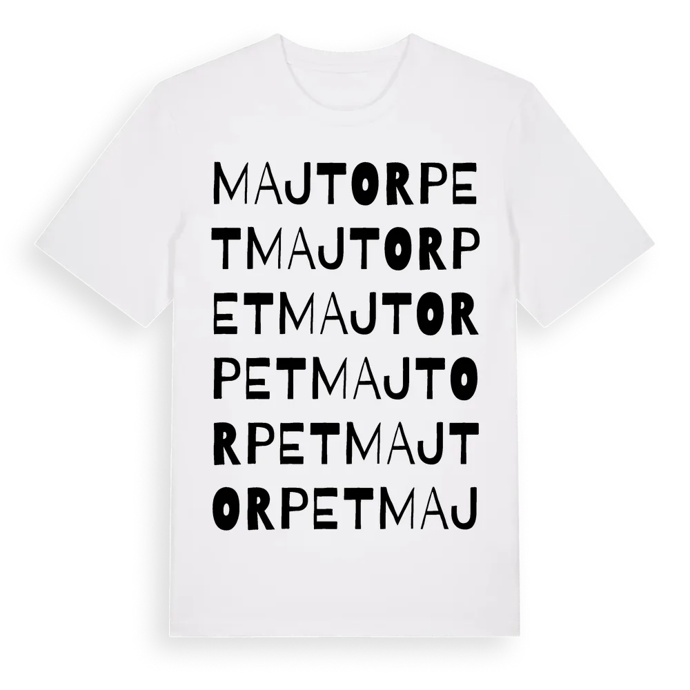 Majtorpet ordlek t-shirt är inspirerad av Majtorpet i Kalmar län, Sverige. Tröjan är designad för dig som har en speciell koppling till platsen – oavsett om du bor här, har rötterna här eller bara älskar Majtorpet.