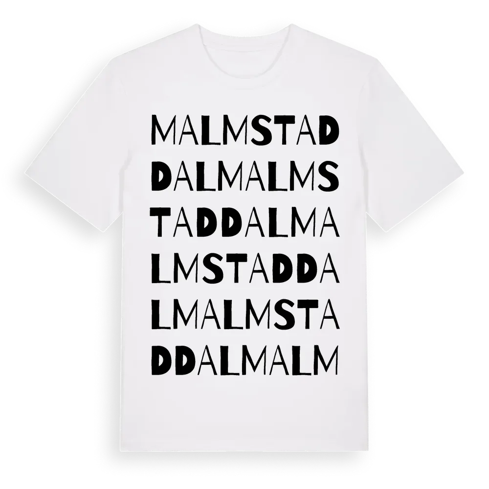 Malmstaddal ordlek t-shirt är inspirerad av Malmstaddal i Kalmar län, Sverige. Tröjan är designad för dig som har en speciell koppling till platsen – oavsett om du bor här, har rötterna här eller bara älskar Malmstaddal.