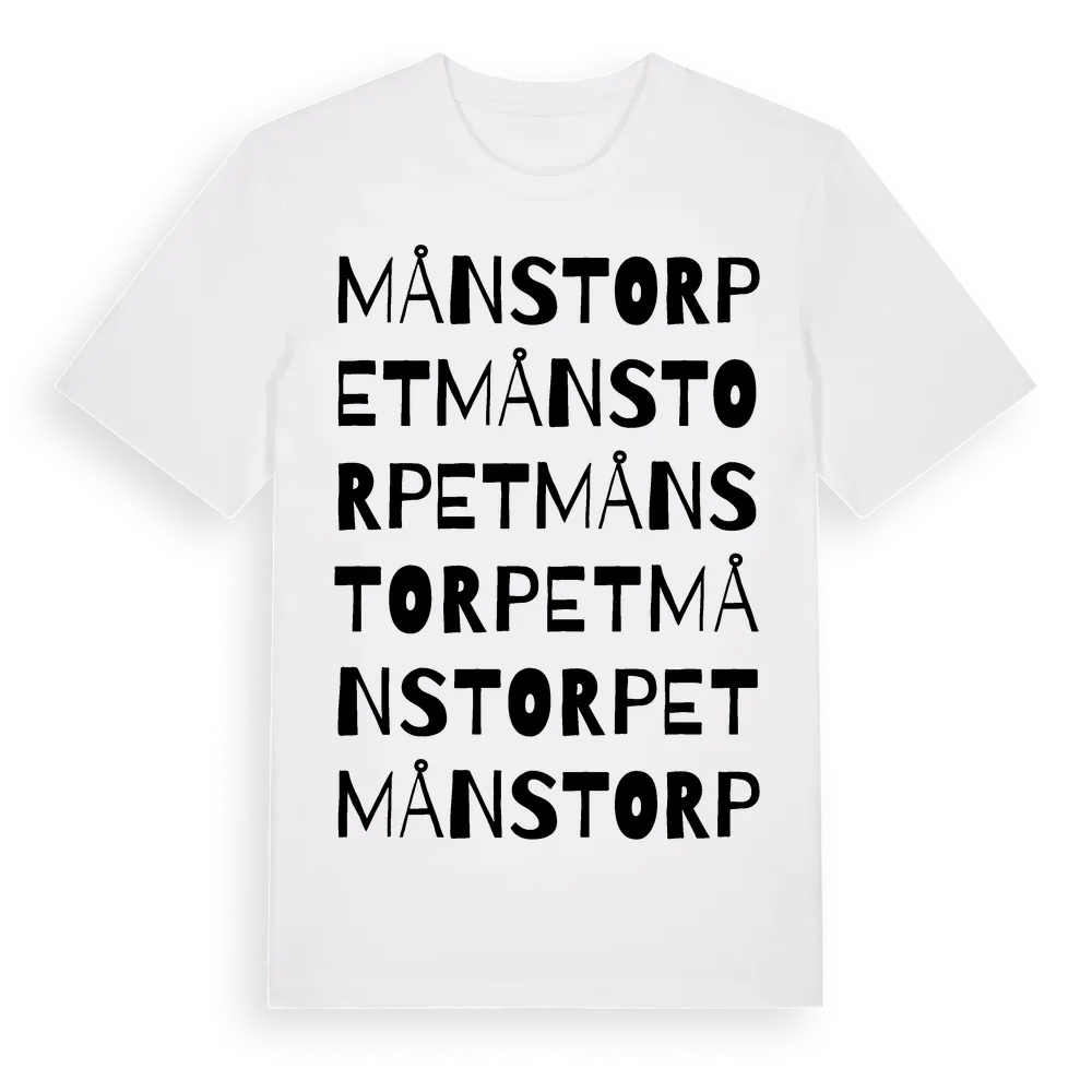 Månstorpet ordlek t-shirt är inspirerad av Månstorpet i Kalmar län, Sverige. Tröjan är designad för dig som har en speciell koppling till platsen – oavsett om du bor här, har rötterna här eller bara älskar Månstorpet.
