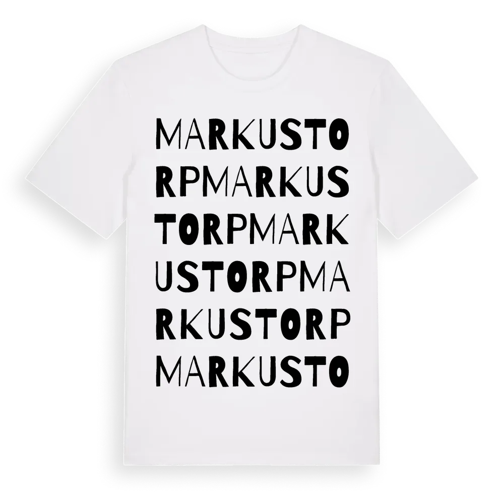 Markustorp ordlek t-shirt är inspirerad av byn Markustorp i Kalmar län, Sverige. Tröjan är designad för dig som har en speciell koppling till platsen – oavsett om du bor här, har rötterna här eller bara älskar Markustorp.