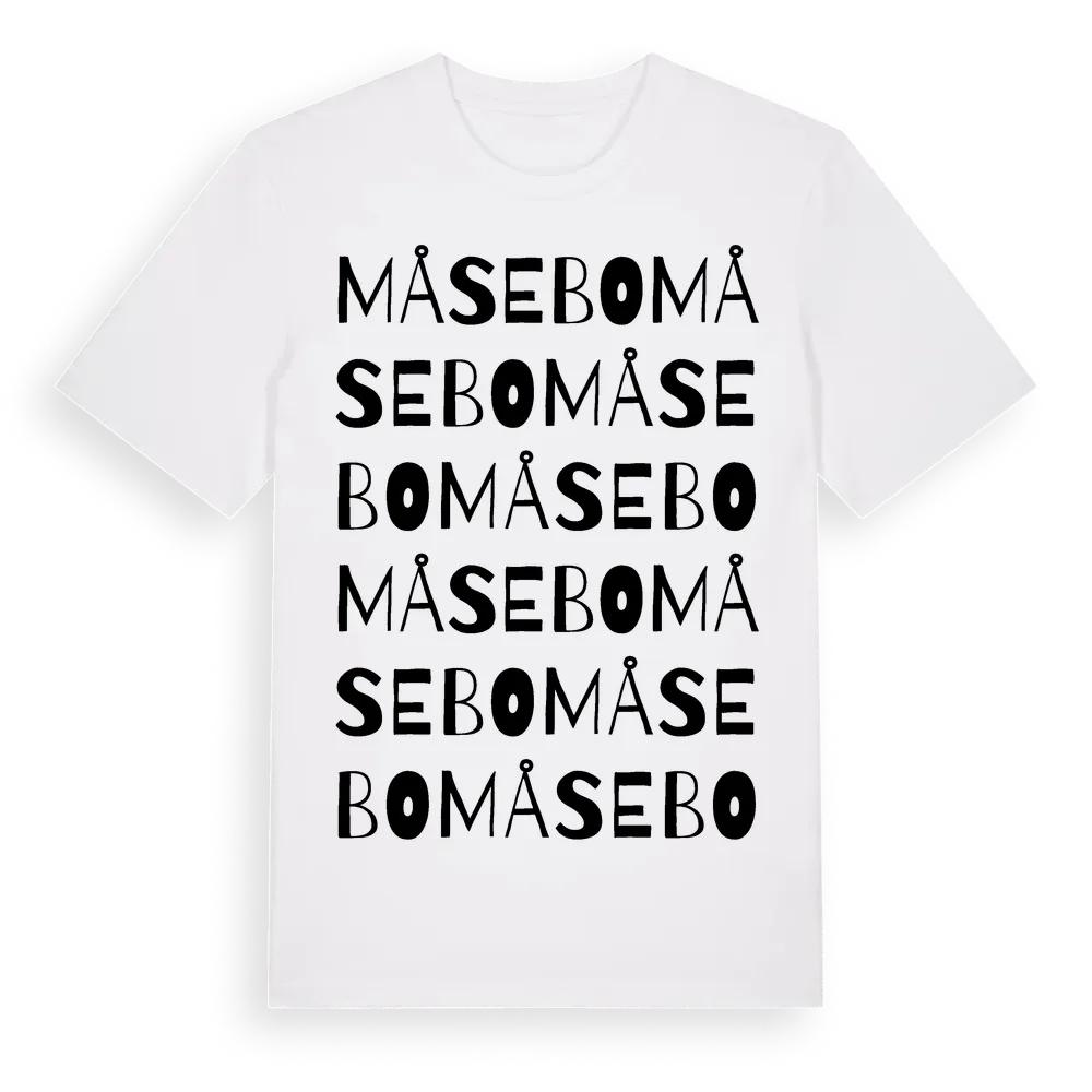 Måsebo ordlek t-shirt är inspirerad av byn Måsebo i Kalmar län, Sverige. Tröjan är designad för dig som har en speciell koppling till platsen – oavsett om du bor här, har rötterna här eller bara älskar Måsebo.