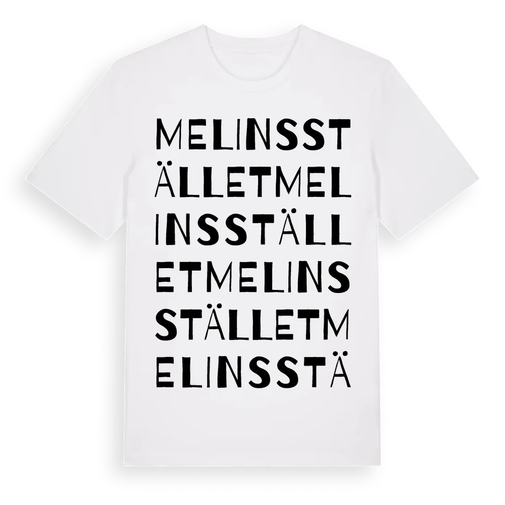 Melinsstället ordlek t-shirt är inspirerad av Melinsstället i Kalmar län, Sverige. Tröjan är designad för dig som har en speciell koppling till platsen – oavsett om du bor här, har rötterna här eller bara älskar Melinsstället.
