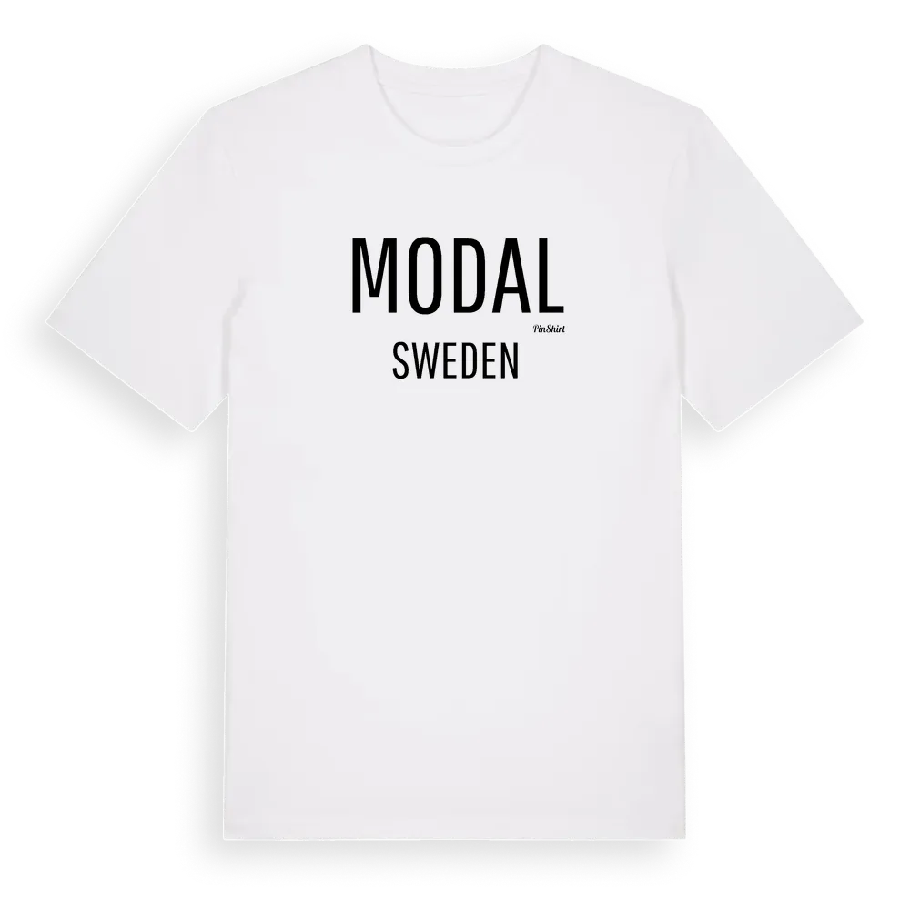 Modal i Sverige t-shirt är inspirerad av Modal i Kalmar län, Sverige. Tröjan är designad för dig som har en speciell koppling till platsen – oavsett om du bor här, har rötterna här eller bara älskar Modal.