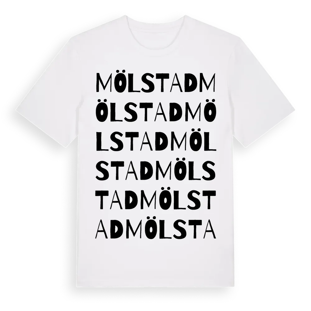 Mölstad ordlek t-shirt är inspirerad av byn Mölstad i Kalmar län, Sverige. Tröjan är designad för dig som har en speciell koppling till platsen – oavsett om du bor här, har rötterna här eller bara älskar Mölstad.