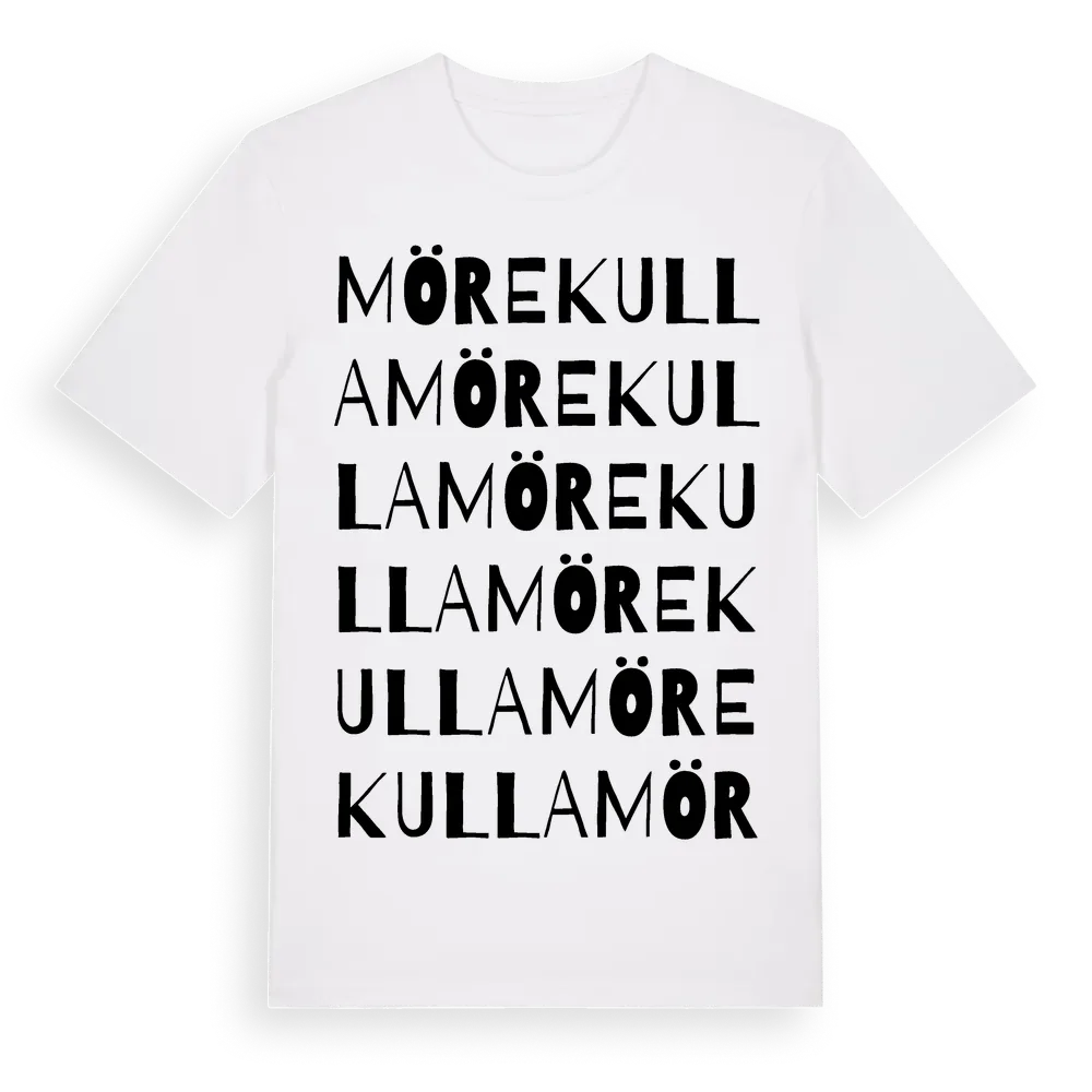 Mörekulla ordlek t-shirt är inspirerad av Mörekulla i Kalmar län, Sverige. Tröjan är designad för dig som har en speciell koppling till platsen – oavsett om du bor här, har rötterna här eller bara älskar Mörekulla.