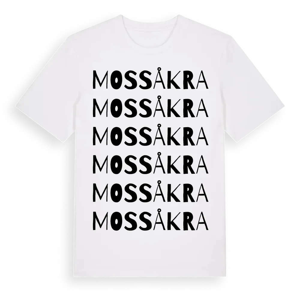 Mossåkra ordlek t-shirt är inspirerad av byn Mossåkra i Kalmar län, Sverige. Tröjan är designad för dig som har en speciell koppling till platsen – oavsett om du bor här, har rötterna här eller bara älskar Mossåkra.